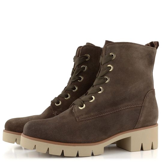 Stylové dámské kotníkové boty od značky Gabor jsou ideální volbou pro podzimní a zimní sezónu. Tyto pohorky v tlumeném čokoládově hnědém odstínu kombinují moderní design s vysokou kvalitou materiálů. Svršek je vyroben z jemné semišové kůže, která dodává botám luxusní vzhled. Kulatá a prostorná špička zajišťuje pohodlí při každodenním nošení.