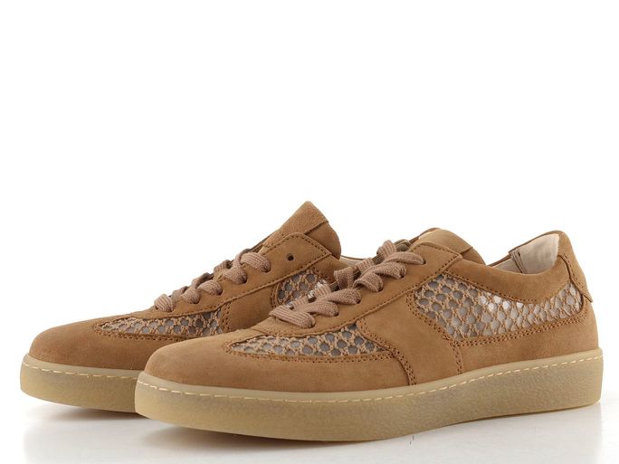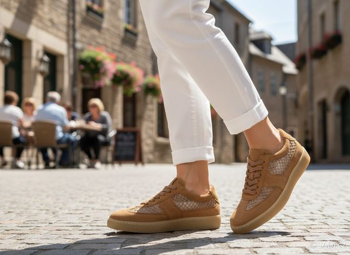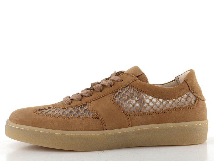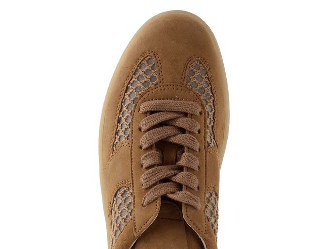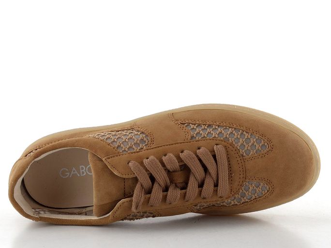 Dámské prodyšné polobotky značky Gabor jsou ideálním společníkem pro jarní a letní dny. Vyrobené z kvalitní semišové kůže v kombinaci s vyšívanou síťovinou, tyto tenisky v světle hnědé (oříškové) barvě spojují styl a komfort. Klasické šněrování s plochými tkaničkami a měkčený kotníkový lem zajišťují pohodlné nošení po celý den.