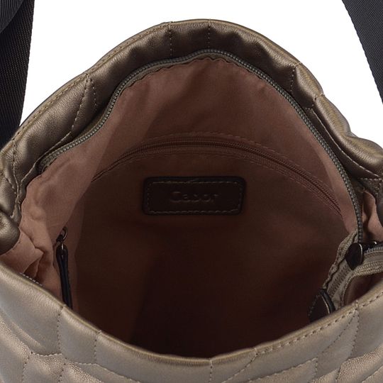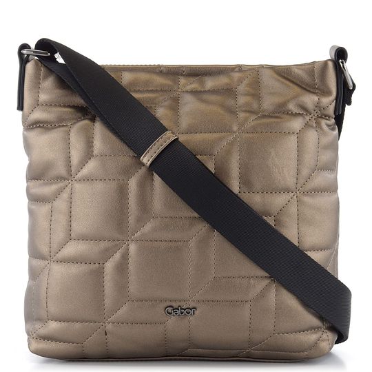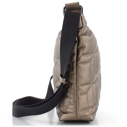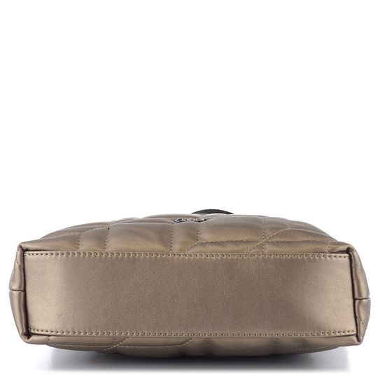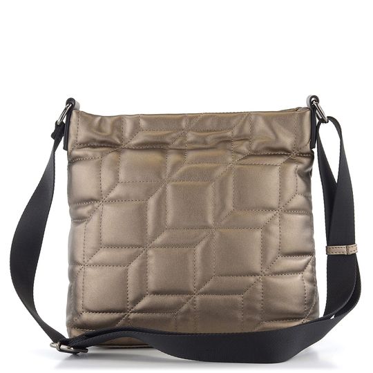 Praktická dámská crossbody kabelka v bronzové metalické barvě s prošívaným vzorem a regulovatelným páskem přes rameno.
