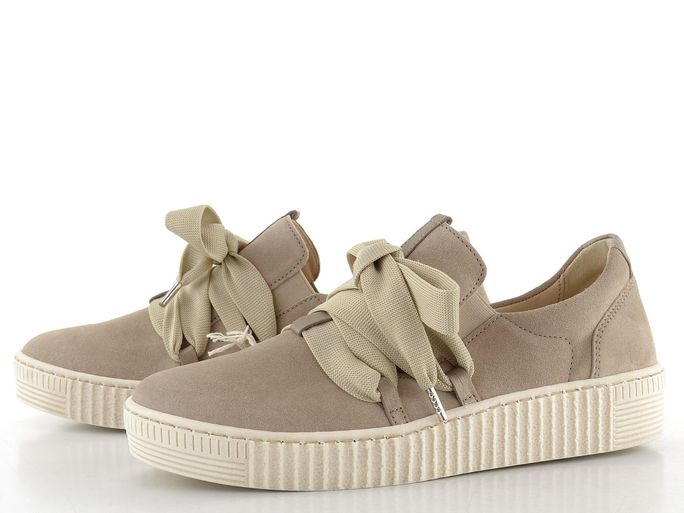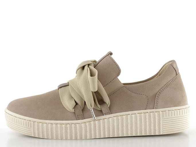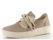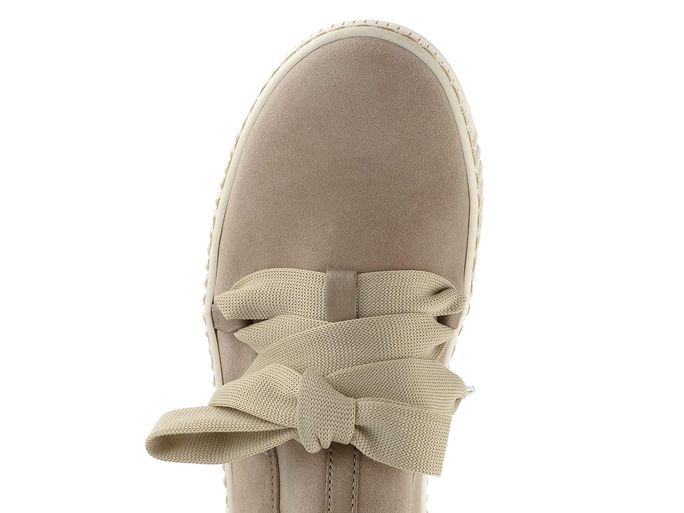 Dámské módní nazouvací polobotky v béžové barvě s ozdobnými tkaničkami.