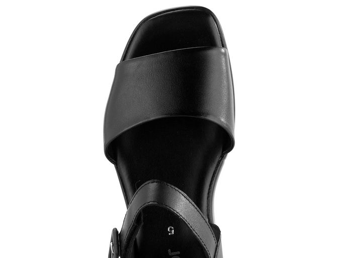 - Vyrobeny z hladké černé kůže, která dodává sandálům moderní a stylový vzhled.
