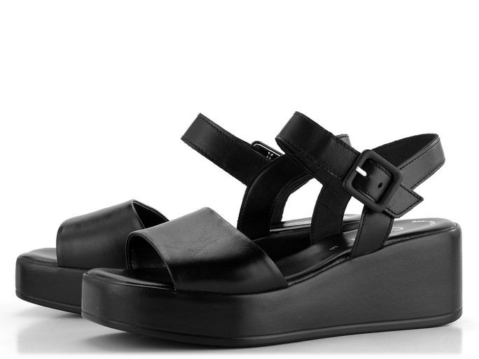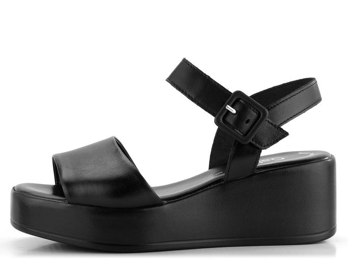 Originální dámské sandály z hladké kůže v černé barvě a na vysokém pohodlném klínku.