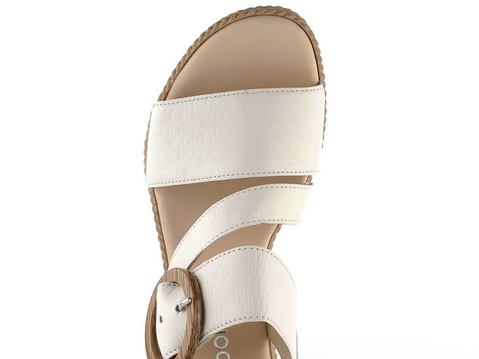 Zažijte luxus a pohodlí s dámskými sandály na klínu od značky Gabor. Tyto elegantní páskové boty v béžovo-bílé kombinaci jsou ideální volbou pro jarní a letní sezónu. Svršek i podšívka jsou vyrobeny z hladké kůže, což zajišťuje nejen stylový vzhled, ale také trvanlivost a komfort. Sandály mají výraznou dekorativní sponu a zapínání na suchý zip, což usnadňuje jejich obouvání. Pevná platforma s klínkem o výšce 7,3 cm poskytuje stabilitu a pohodlí při každém kroku. Díky měkké stélce a pružence na nártovém pásku se budete cítit pohodlně po celý den. Perfektní volba pro ženy, které hledají kvalitu a styl v jednom.