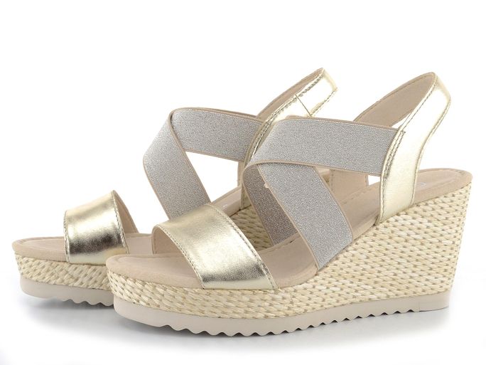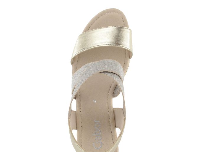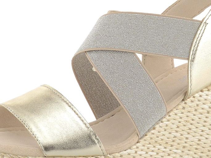 Dámské sandály na platformě s klínkem ve světle zlatém, platinovém provedení.
