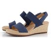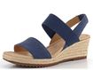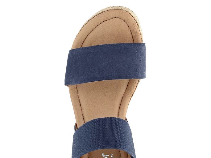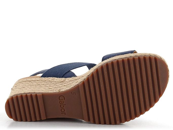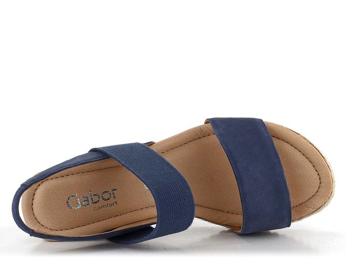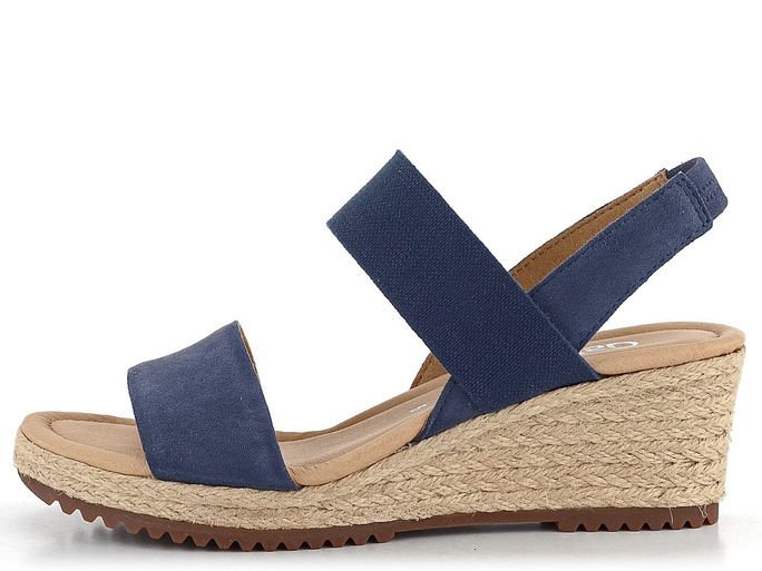 Dopřejte si luxus s dámskými sandály na klínu od značky Gabor. Tyto sandály jsou ideální volbou pro jarní a letní sezónu, ať už do města, do kanceláře nebo na lehkou procházku. Jsou vyrobeny z jemné semišové kůže v kombinaci s pružnou textilií, což zajišťuje maximální pohodlí a styl. Tmavě modrá barva s nádechem do šeda dodává sandálům moderní vzhled, který se hodí k různým outfitům.