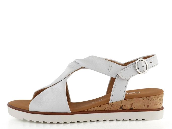 Pokud hledáte pohodlné a stylové sandály pro nadcházející jaro a léto, sandály na klínu od značky Gabor jsou ideální volbou. Tyto dámské sandály vynikají svým kulatým střihem a efektně přetočenými pásky na nártu, které zajišťují nejen moderní vzhled, ale i pohodlí díky všitým pruženkám. Patní pásek s možností délkové regulace poskytuje přizpůsobivost a stabilitu. Měkká stélka z broušené kůže a klínek v korkovém dekoru nejenže zvyšují komfort, ale také dodávají botám elegantní vzhled. Kvalitní strukturovaná kůže v bílé barvě zajišťuje, že tyto sandály snadno zkombinujete s jakýmkoliv outfitem.