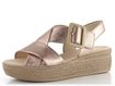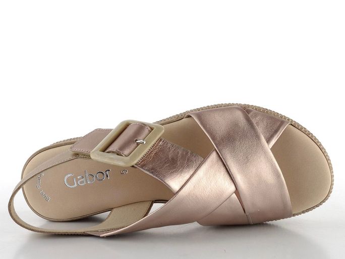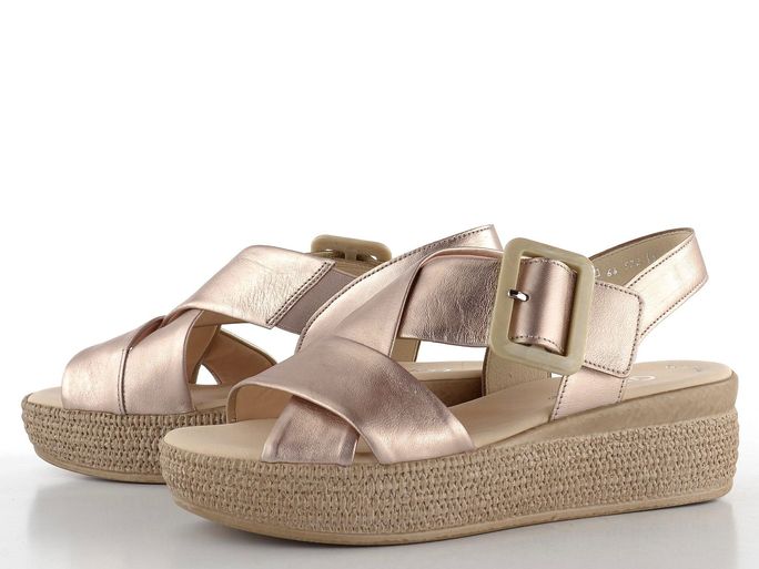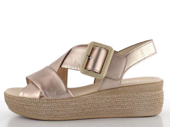 Zažijte dokonalou kombinaci pohodlí a stylu s dámskými sandály na platformě od značky Gabor. Tyto sandály jsou navrženy pro ženy, které hledají nejen módní, ale také komfortní obuv pro jarní a letní dny. Vyrobeny z poddajné hladké kůže v elegantním metalickém béžovém odstínu s jemným narůžovělým nádechem, nabízejí nejen styl, ale také pohodlí díky měkké stélce z jemně zabroušené kůže. Praktické zapínání na suchý zip a pruženka na nártovém pásku zajišťují snadné obouvání a perfektní přizpůsobení. S 5 cm vysokým podpatkem a pevnou platformou, jsou tyto sandály ideální volbou pro každodenní nošení i formálnější příležitosti.