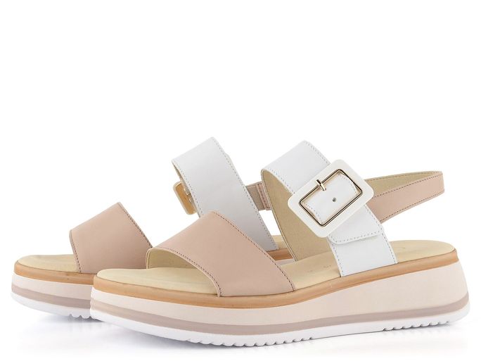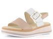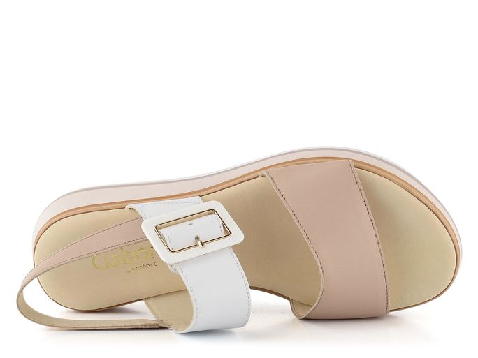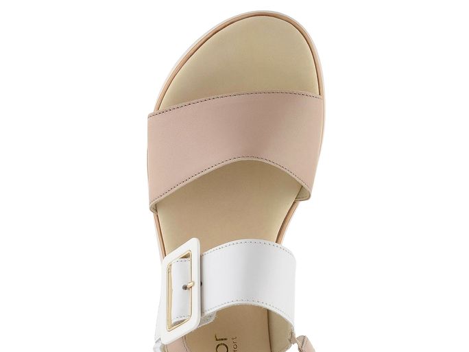 Velmi pohodlné a stylové dámské sandály od značky Gabor jsou ideální volbou pro jarní a letní sezónu. Tyto sandály kombinují pudrově růžový a bílý odstín a jsou vyrobeny z kvalitní hladké kůže. Pohodlný střih s kulatou špičkou a měkkou stélkou z matné kůže poskytuje maximální komfort při každodenním nošení. Nártový pásek je upínaný na suchý zip a doplněný funkcí délkové regulace, což zajišťuje snadné přizpůsobení. Patní pásek se všitou pruženkou přidává na stabilitě a pohodlí. Vyšší platforma s mírným klínkem v narůžovělém tónu dodává sandálům moderní vzhled a 4,5 cm vysoký podpatek nabízí elegantní výšku bez ztráty pohodlí. Tyto sandály jsou ideální volbou pro každodenní nošení do města, do kanceláře nebo na lehkou procházku. Nechte se unést kombinací stylu a pohodlí s těmito sandály od značky Gabor.