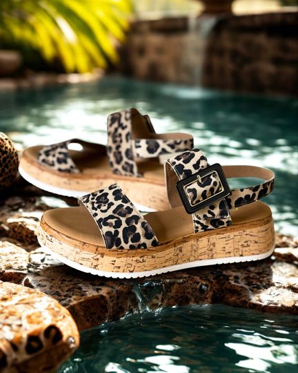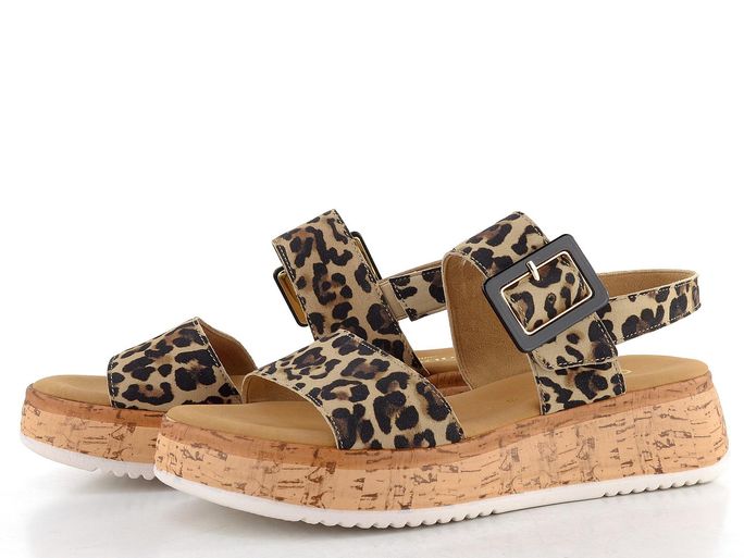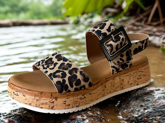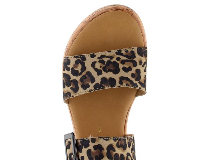 Komfortní dámské sandály z nubukové kůže s leopardím vzorem a na pohodlné vyšší platformě.