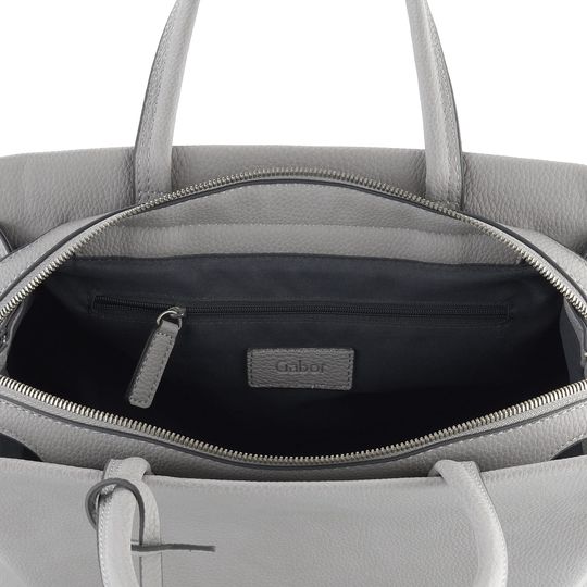 Praktická a stylová dámská shopper kabelka od značky Gabor je ideální doplněk pro každodenní nošení. Vyrobena z pevné syntetiky, která drží tvar, tato kabelka v elegantní středně šedé barvě se stříbrným kováním zaujme na první pohled. Díky střední velikosti je dostatečně prostorná pro všechny vaše nezbytnosti. Kabelka má madla do ruky vzdálená od hrany kabelky 15 cm a odepínatelný ramenní popruh s délkovou regulací (85 - 155 cm), což zajišťuje pohodlné nošení. Vnitřní výbava zahrnuje jednu zipovou kapsičku a dvě otevřené kapsičky na mobil či klíče. Rozměry kabelky jsou: šířka 28 cm, výška 25 cm a hloubka dna 13 cm. Navíc je vybavena odepínatelným přívěškem s kovovým logem značky. Shora je kabelka uzavíratelná na zip, což zajišťuje bezpečnost vašich věcí. Tato kabelka je ideální volbou pro podzimní a zimní sezónu 2023/24.