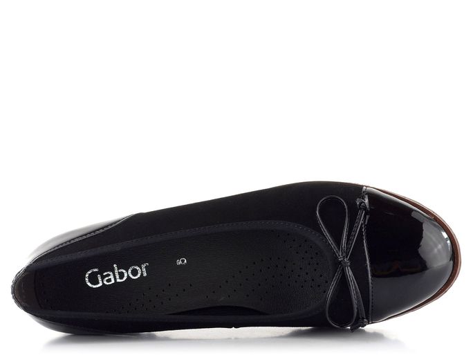 Pro ženy, které hledají stylovou a přitom pohodlnou obuv, jsou tyto baleríny od značky Gabor ideální volbou. V černé barvě s prostornou kulatou špičkou a decentní ozdobnou mašličkou se hodí jak do kanceláře, tak na lehkou procházku ve městě. Svršek je vyroben z kvalitní semišové kůže, zatímco špička a vnější opatek jsou z lakované syntetiky, což dodává botám elegantní vzhled.