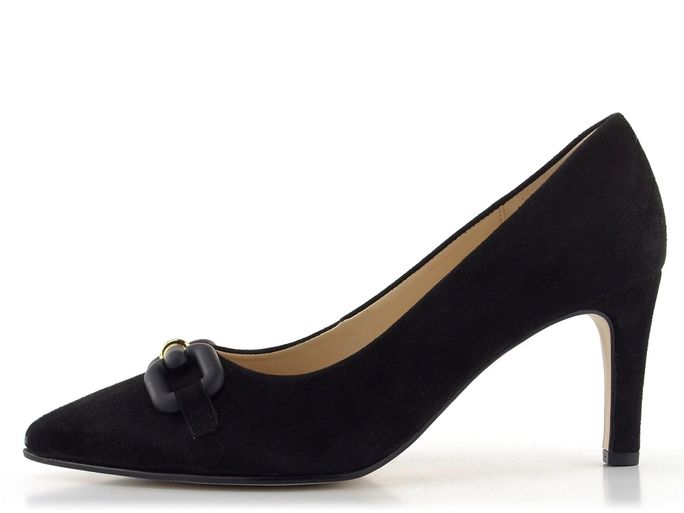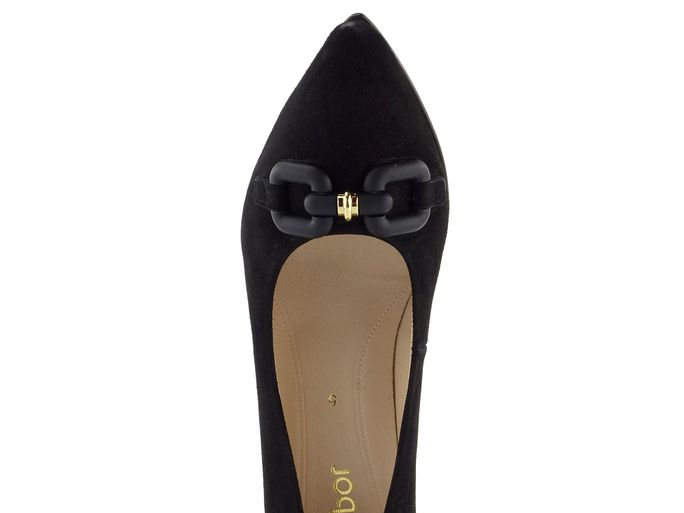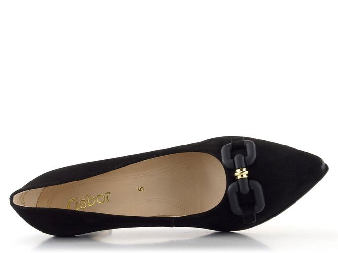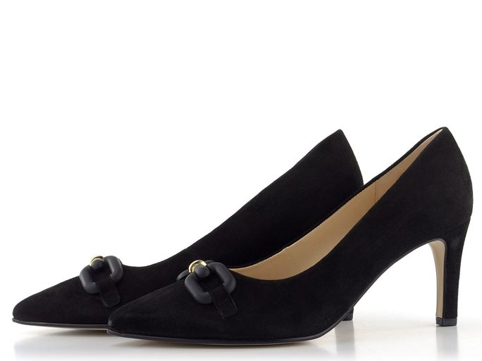Elegantní černé lodičky od značky Gabor jsou ideální volbou pro každou ženu, která hledá kombinaci stylu a pohodlí. Tyto lodičky z kolekce jaro/léto 2023 jsou vyrobeny z kvalitní semišové kůže, která dodává botám luxusní vzhled. Špičatý střih a jehlový potažený podpatek o výšce 7,5 cm podtrhují jejich sofistikovaný design.