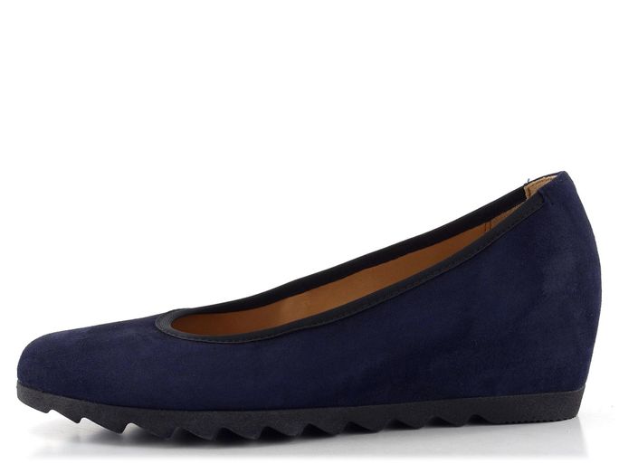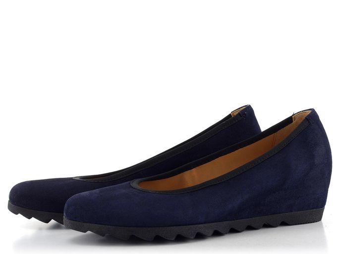 Velmi pohodlné a lehké lodičky na klínku od renomované značky Gabor jsou ideální volbou pro každou ženu, která hledá spojení elegance a komfortu. Tyto lodičky z kolekce Jaro/Léto 2023 vynikají svým tmavě modrým odstínem s lehkým nádechem do fialové, což je činí skvělým doplňkem k různým outfitům. Díky výrobní linii Sacchetto zajišťují lehkost, flexibilitu a vysoký komfort nošení.