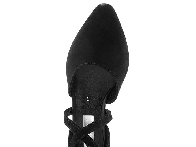 Elegantní semišové lodičky od značky Gabor v černé barvě jsou ideální volbou pro podzimní a zimní sezónu. Díky špičatému střihu a křížícím se páskům na nártu s pruženkou a délkovou regulací získáte nejen stylový vzhled, ale i maximální pohodlí. Semišový svršek a celokožená vnitřní podšívka zajistí dlouhou životnost a komfort při nošení. Broušený vnitřní opatek drží patu pevně na svém místě. Měkká kožená stélka a štíhlý podpatek ve výšce 5 cm poskytují dokonalou rovnováhu mezi elegancí a pohodlím. Flexibilní podešev s jemným vzorkem a lepený výrobní způsob zaručují, že tyto lodičky budou vaším spolehlivým společníkem pro každou příležitost.