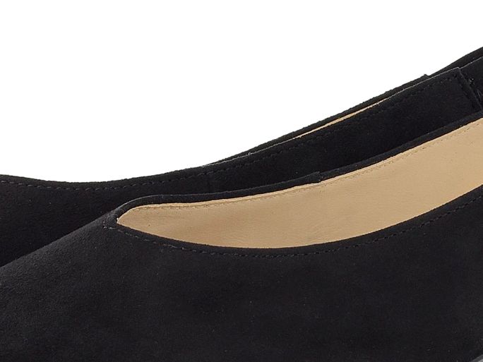 Dámské semišové lodičky ve špičatějším střihu se širokým patním páskem.