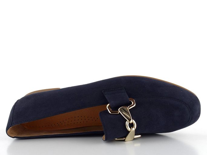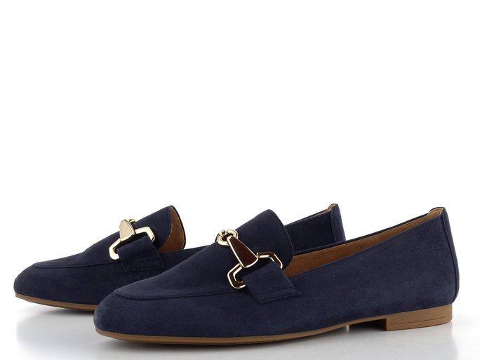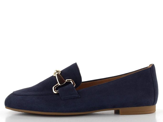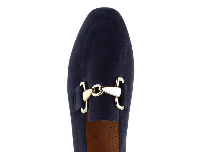 Přinášíme vám eleganci a pohodlí v podobě semišových mokasín od značky Gabor. Tyto boty jsou ideální volbou pro jarní a letní sezónu, ať už se chystáte do kanceláře nebo na lehkou procházku městem. Mokasíny mají módní střih s užší špičkou, což je činí vhodnými pro standardní i lehce užší typ chodidla. Vyrobeny z poddajné semišové kůže v tmavě modré barvě s nádechem švestkové, doplněné o decentní světle zlaté kování. Uvnitř vás potěší měkká perforovaná stélka z hladké kůže a podšívka z broušené textilie. Ohebná syntetická podešev a široký nízký podpatek o výšce 1,3 cm zajišťují komfort při každém kroku.