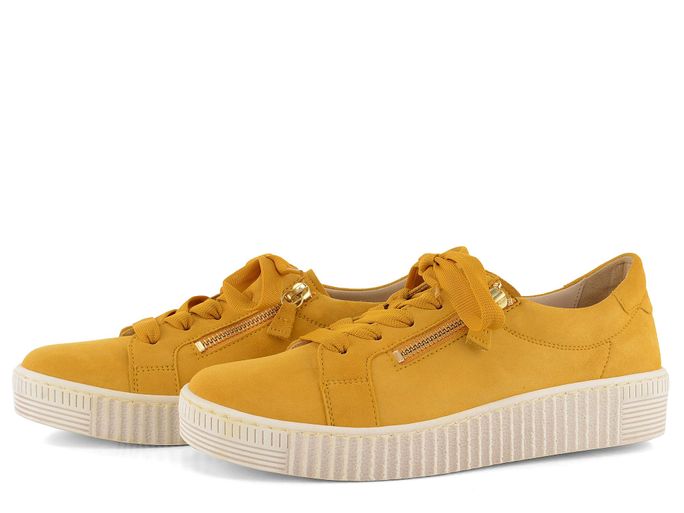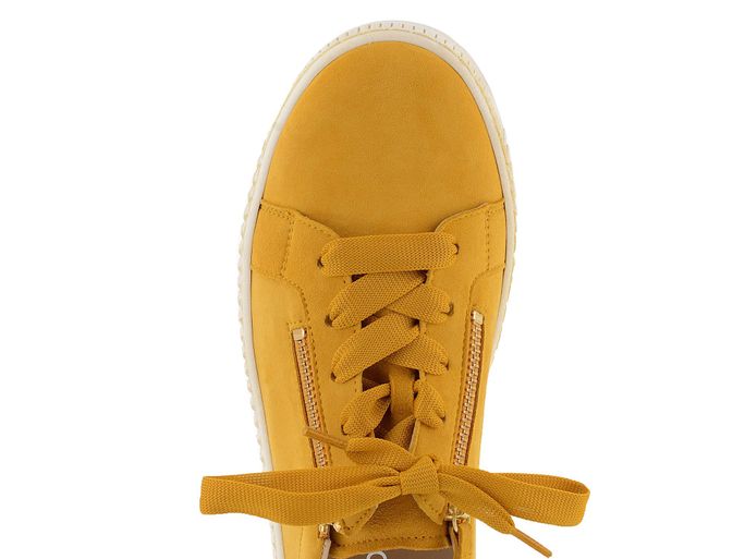 Dámské semišové polobotky od značky Gabor jsou ideální volbou pro jarní a letní sezónu. Tyto boty v módním žlutém provedení zaujmou nejen svou barvou, ale i ležérním stylem, který skvěle padne na nohu. Vyrobeny z kvalitní semišové kůže, zajišťují pohodlí a dlouhou životnost. Dva funkční zipy ve zlaté barvě a dominantní širší šněrovadla dodávají botám jedinečný vzhled.