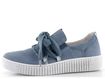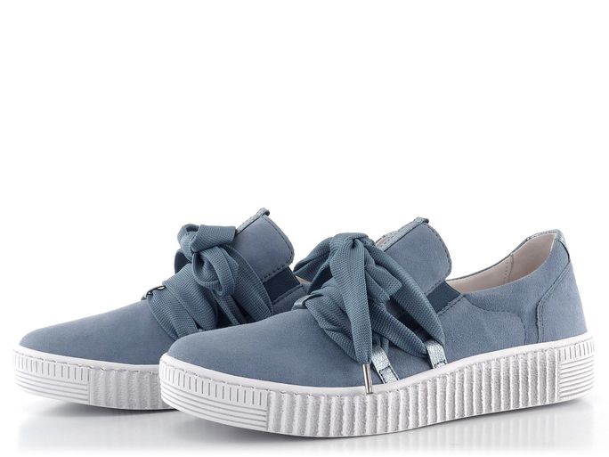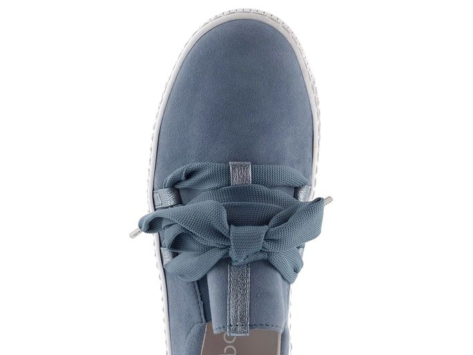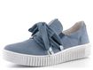 Dámské módní nazouvací polobotky v modrošedé barvě s ozdobnými tkaničkami.