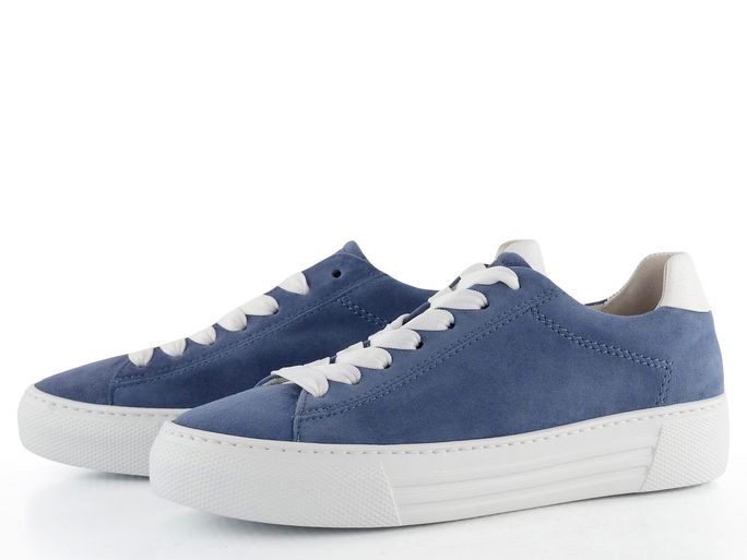Dámské semišové tenisky od značky Gabor kombinují stylový design s maximálním pohodlím. Tyto polobotky vynikají šedomodrým odstínem doplněným o kontrastní bílé prvky, což jim dodává elegantní vzhled. Vyrobené z kvalitní semišové kůže se zpevněným patním lemem z hladké kůže, nabízejí nejen atraktivní vzhled, ale také dlouhou životnost. Klasické šněrování s plochými a širokými tkaničkami zajišťuje pohodlné nošení. Uvnitř naleznete měkkou, vyjímatelnou vložku potaženou kůží a polstrovaný jazyk, což přispívá k celodennímu komfortu. Lehká vysoká platforma a šitý výrobní způsob zajišťují flexibilitu, ideální pro městské prostředí.