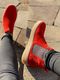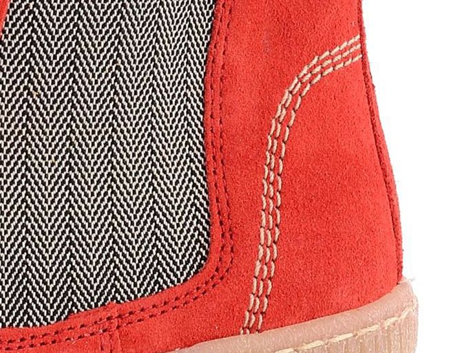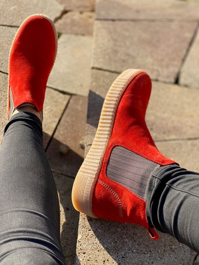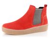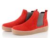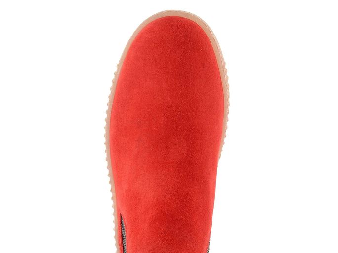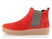 Dámský módní chelsea kotník ze semišové kůže v trendy červenooranžové barvě se dvěma postranními širokými pružinkami.