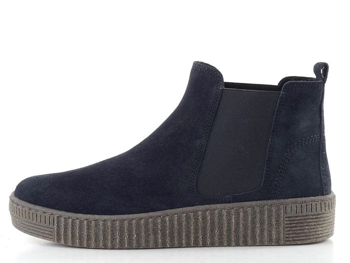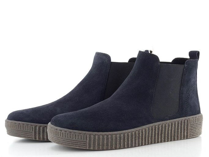 Dámský chelsea kotník značky Gabor spojuje komfort s módním stylem. Tento model v tmavě modré barvě je vyroben ze semišové kůže, což zajišťuje nejen atraktivní vzhled, ale i příjemný pocit při nošení. S kulatým střihem špičky a dvěma širokými postranními gumičkami se snadno obouvá a přizpůsobí se vašim nohám.