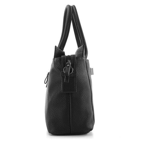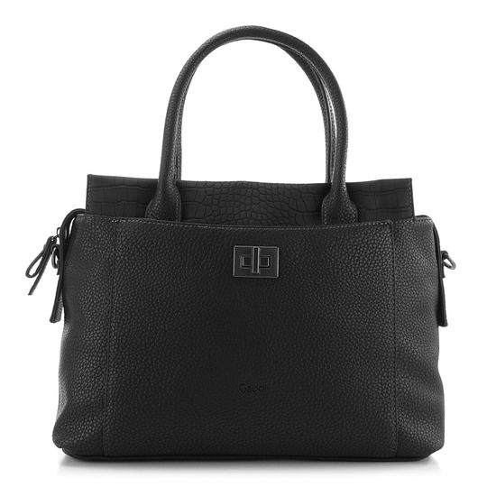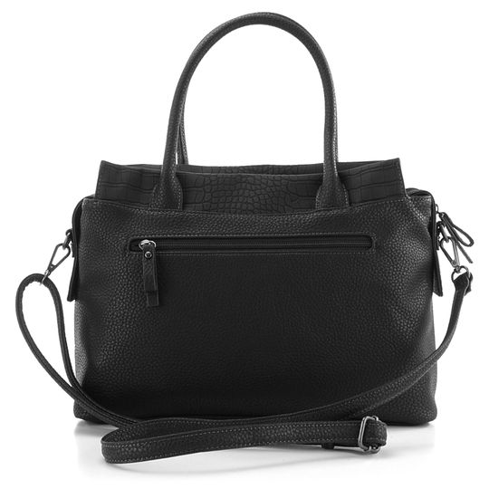 Dámská módní shopper kabelka v černé barvě s ozdobnou hadinkou a přední kapsou na designový zámeček.