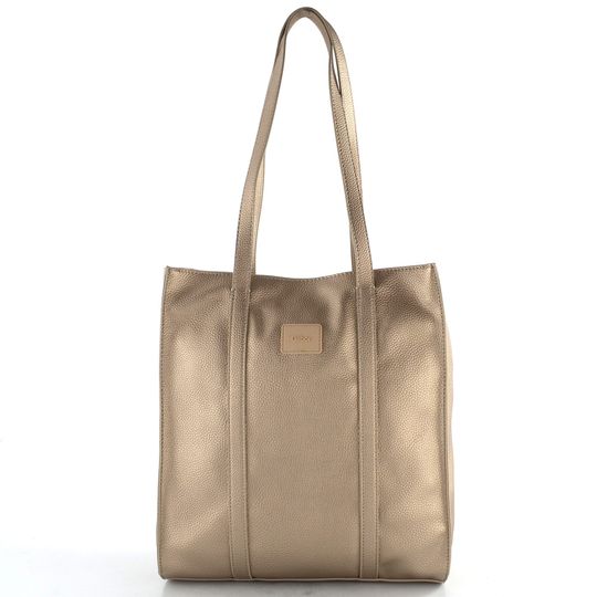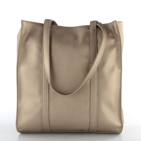 Prostorná dámská kabelka v jednoduchém střihu a módní metalické barvě.