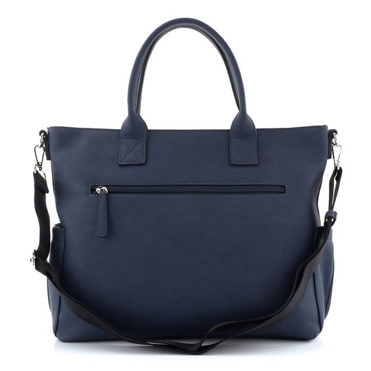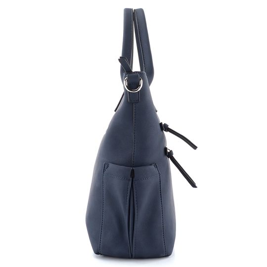 Dámská módní shopper kabelka v tmavě modré barvě, v líbivém střihu s předními a bočními kapsami.