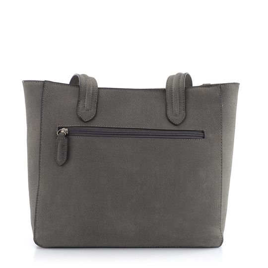Dámská módní shopper kabelka přes rameno v tmavě šedé barvě a ve střídmém designu.
