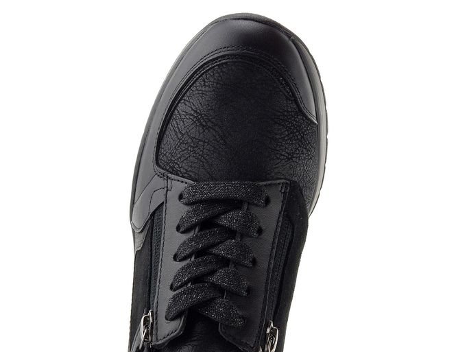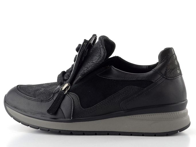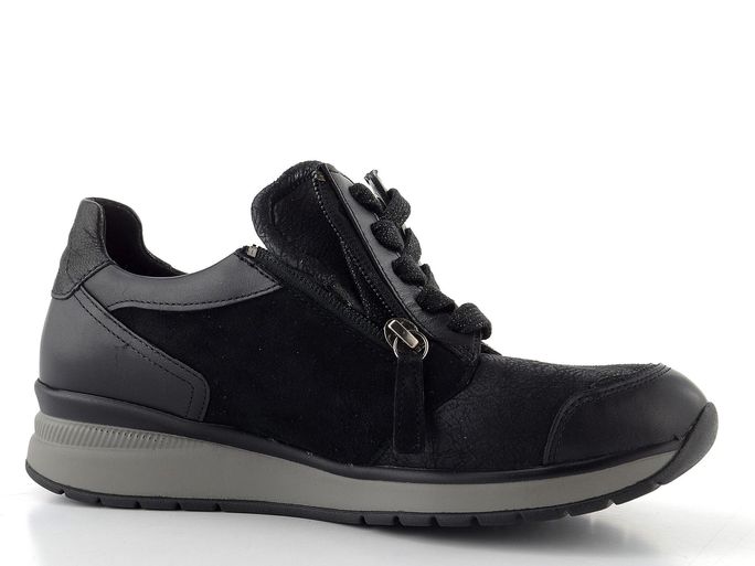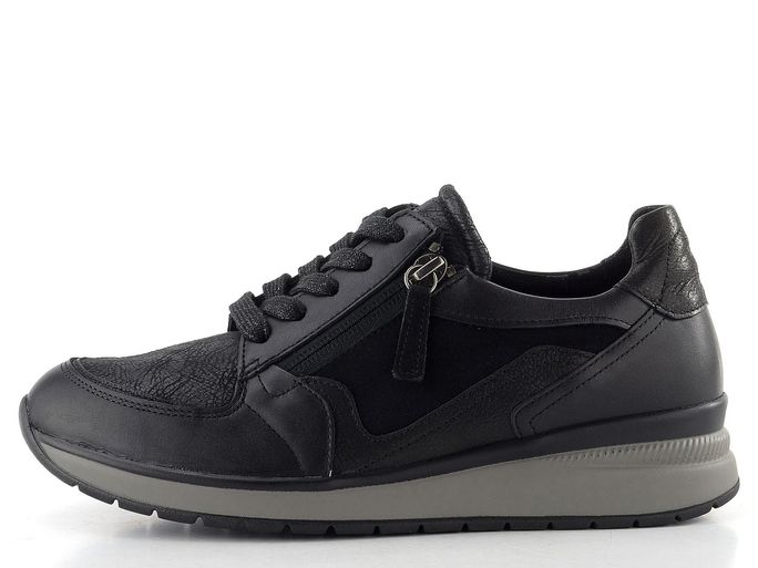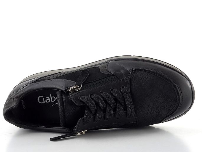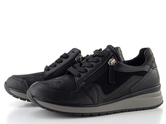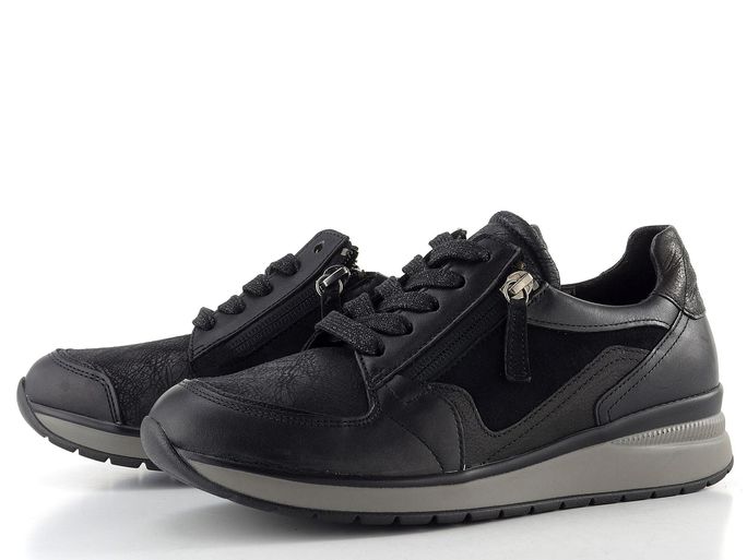 Dámské tenisky od značky Gabor jsou ideální volbou pro ženy, které hledají kombinaci stylu a pohodlí. Tyto tenisky v elegantní černé barvě jsou navrženy s ohledem na extra široký typ chodidla a nabízejí pohodlný kulatý střih s šířkou "K". Vyrobeny jsou z kvalitní kombinace hladké a semišové kůže s textilií, která zajišťuje maximální komfort.