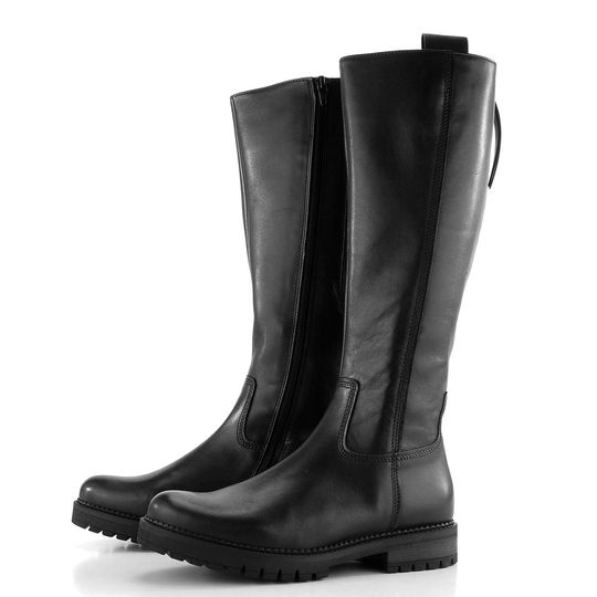 Dámské kozačky značky Gabor představují ideální volbu pro podzimní a zimní sezónu. Tento model je navržen pro plnější typ lýtek, což zajišťuje pohodlí i pro širší chodidla díky šířce "H". Svršek z poddajné hladké kůže v elegantní černé barvě dodává botám nadčasový vzhled.
