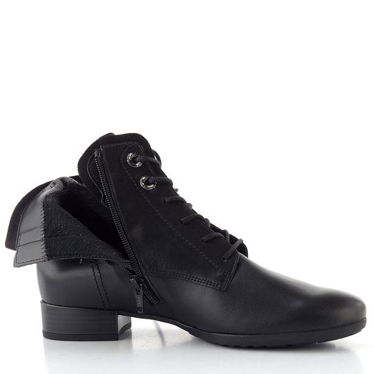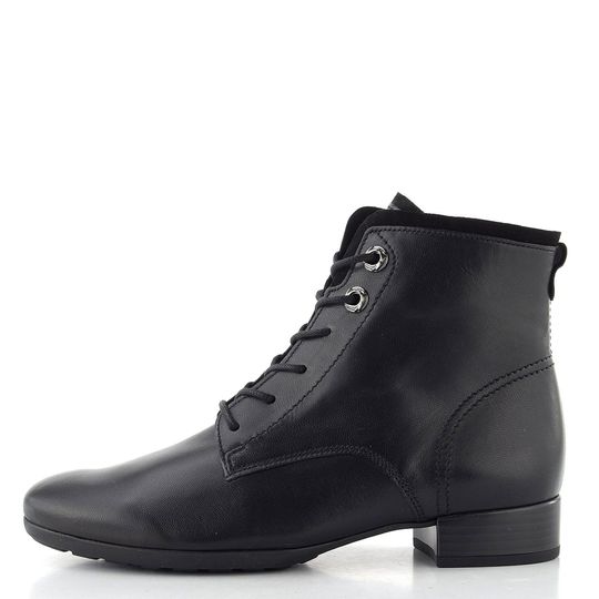 Klasické šněrování doplňuje praktický zip na vnitřní straně, což usnadňuje obutí. Měkká podšívka z hebkého textilu a vyjímatelná vložka s textilním potahem poskytnou příjemný pocit. Flexibilní latexová podešev s vzduchovými polštářky „Air Cube“ a nízký široký podpatek dodávají stabilitu a komfort. S výškou kotníku 13 cm je tento model ideální pro každodenní nošení.
