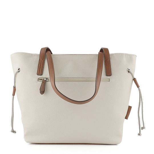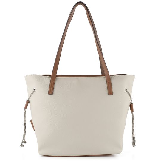 Dámská shopper kabelka ze strukturované syntetiky ve smetanové barvě se stahovacími boky.