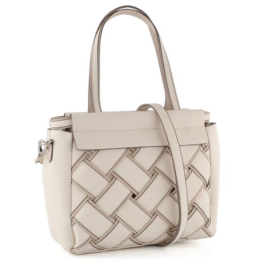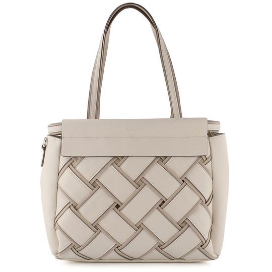 Dámská módní shopper kabelka v prostorném střihu a se zajímavým proplétáním na přední straně.