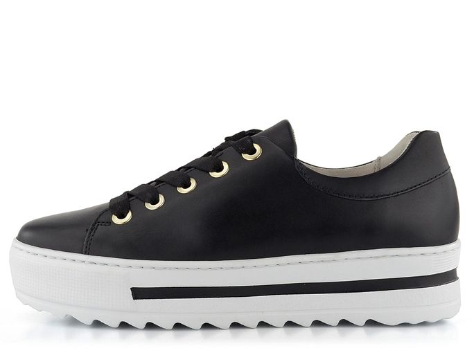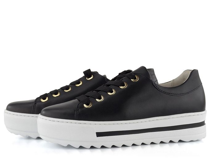 Dámské kožené tenisky v černé barvě, na vysoké platformě s hrubým vzorkem.