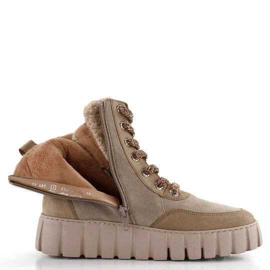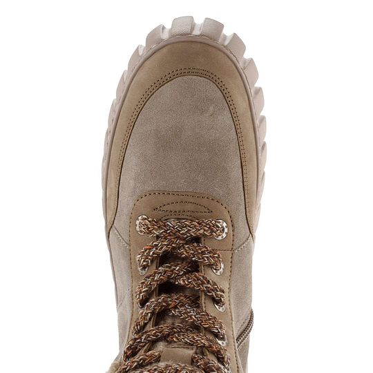 Vyzkoušejte dámské kotníkové boty od značky Gabor, které kombinují styl a pohodlí v ultralehkém designu. Svršek z semišové a nubukové kůže je doplněn o kotníkový lem a jazyk z umělého beránku, což zajišťuje nejen atraktivní vzhled, ale i komfort. Boty v módní šedobéžové a béžové barvě se snadno přizpůsobí vašemu šatníku. Díky šněrování a postrannímu zipu je jejich nošení praktické a pohodlné. Vnitřní textilní podšívka a vyjímatelná stélka zaručují maximální komfort. Robustní, ale lehká podešev s hrubým vzorkem a výškou podpatku 4,5 cm dodává obuvi stabilitu. Ideální volba pro podzimní a zimní sezónu.