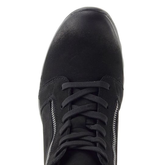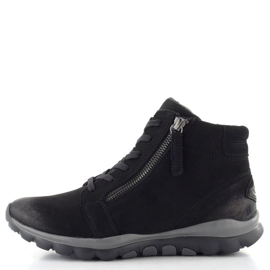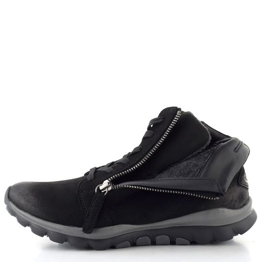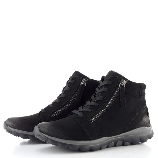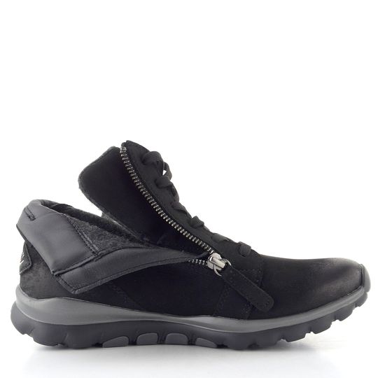 Dámský kotník značky Gabor je ideálním společníkem pro podzimní a zimní dny. Jeho moderní design v černé barvě je doplněn šněrováním a dva postranní zipy, které usnadňují obouvání. Svršek z nubukové kůže a polstrovaný lem zajišťují pohodlí, zatímco teplejší podšívka z filcové textilie vás ochrání před chladem.