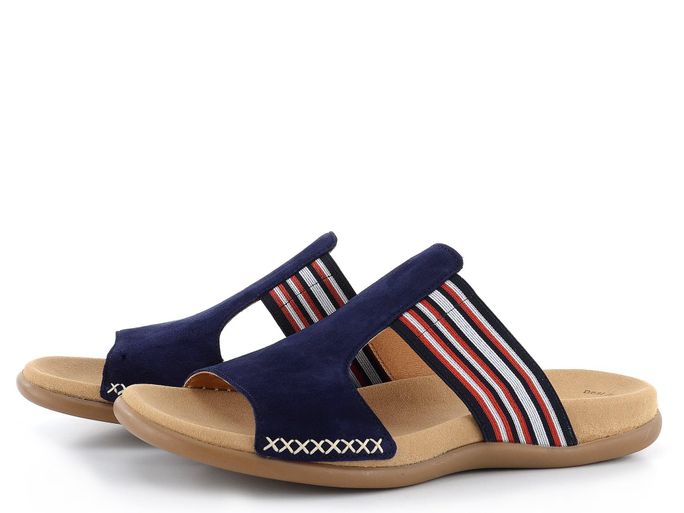 Dámské anatomicky tvarované pantofle s pružným širokým páskem a v módní kombinaci barev.