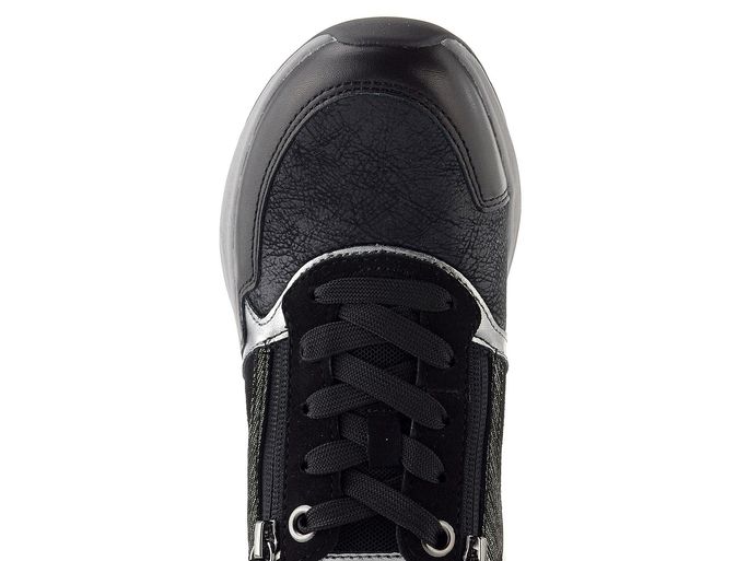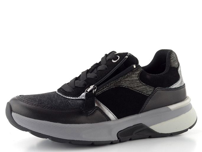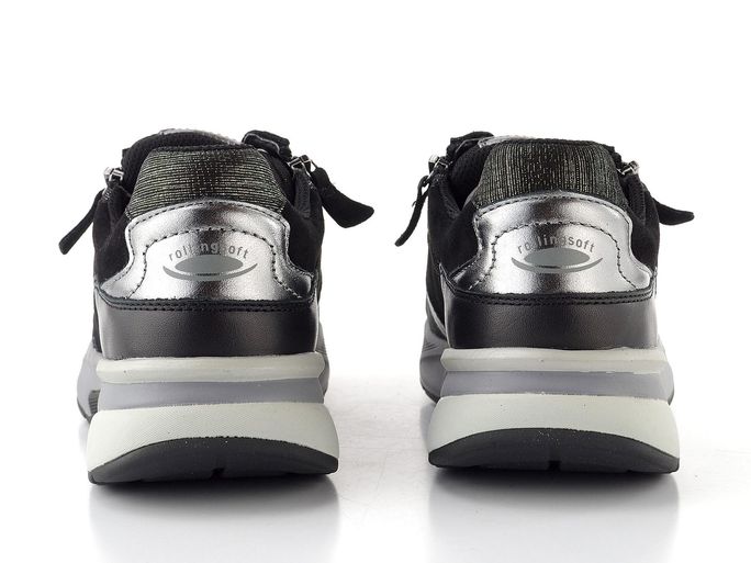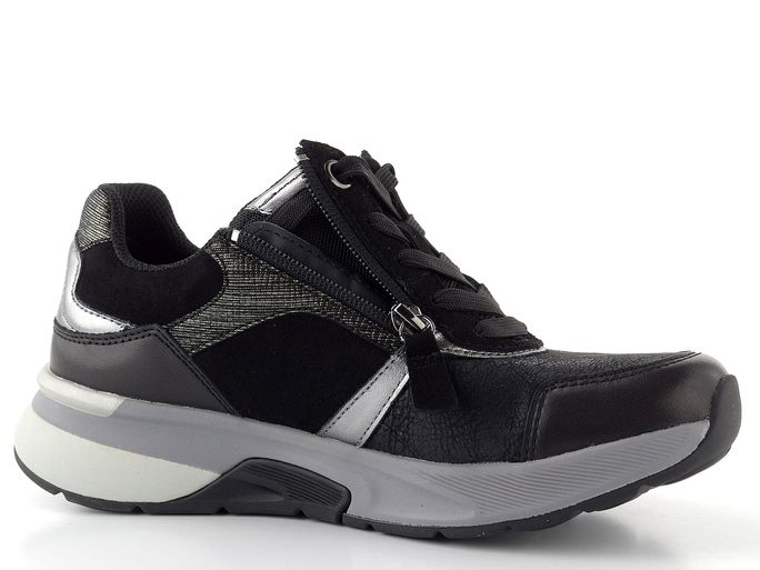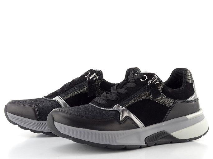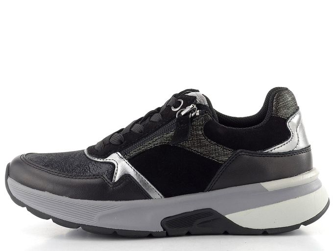 Dámské tenisky od značky Gabor kombinují styl a komfort pro každodenní nošení. Vyrobeny z kombinace hladké, broušené a metalické kůže s textilií, zajišťují nejen atraktivní vzhled, ale i příjemné nošení. Pružná a měkká textilie v oblasti kloubků minimalizuje nepříjemné otlaky. Černá barva s metalickými doplňky ve stříbrné barvě dodává teniskám moderní šmrnc. Dva funkční zipy po stranách usnadňují obutí, zatímco vypolstrovaný kotníkový lem poskytuje dodateční pohodlí. S technologií rollingsoft® se každá chůze stává snadnou a bezbolestnou. Tyto tenisky jsou ideální volbou pro ženy, které hledají kvalitu a styl v jednom.