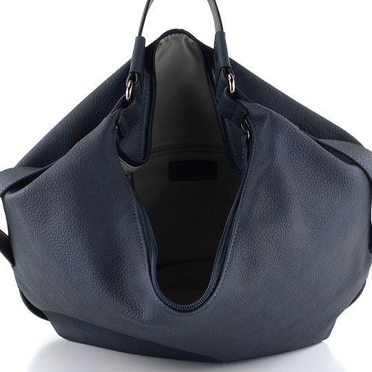 Praktická elegantní kabelka - gondola ze strukturované syntetiky v temně modré barvě.