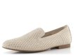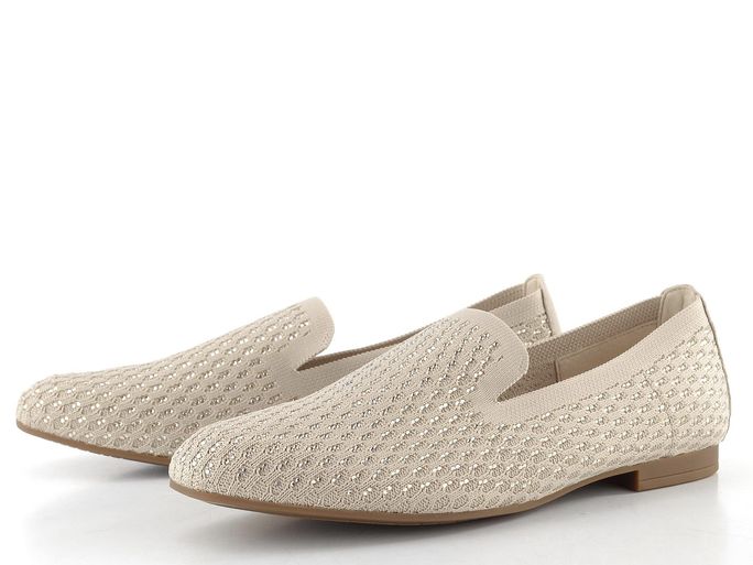 Luxusní dámské mokasíny z prodyšné textilie v béžové barvě, vykládané blyštivými kamínky.