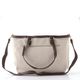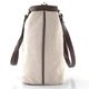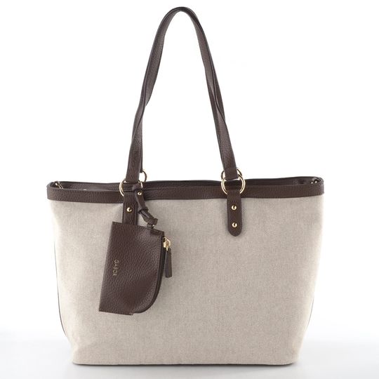 Dámská plátěná shopper kabelka v přírodní béžové barvě s tmavě hnědými konturami a klíčenkou.
