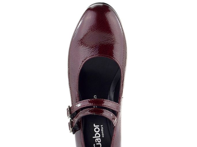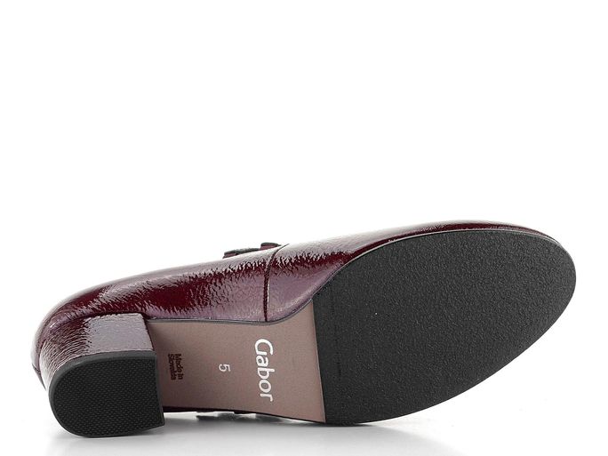 Tyto elegantní vínové lakované lodičky značky Gabor jsou ideální volbou pro podzimní a zimní sezónu. Vyrobené z jemně strukturované, lakované kůže v odstínu burgund/bordó s lehkým metalickým leskem, dodají vašemu outfitu nádech luxusu. Celokožená podšívka a pohodlná stélka s extra měkčením zajistí komfort i při celodenním nošení. Dva délkově nastavitelné nártové pásky na pruženkách poskytují perfektní přizpůsobení vašemu chodidlu. Široký potažený podpatek o výšce 4,5 cm je ideální pro stabilní a pohodlnou chůzi. Podešev ze surové gumy s jemným protiskluzovým vzorkem zajišťuje bezpečnost na každém kroku. Tato obuv je skvělou volbou pro ty, kdo hledají kvalitní a stylové lodičky do města, kanceláře či na formální příležitosti.