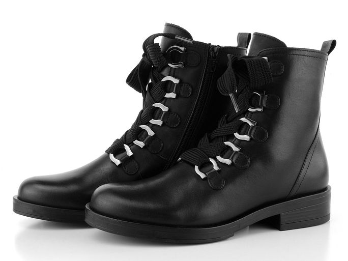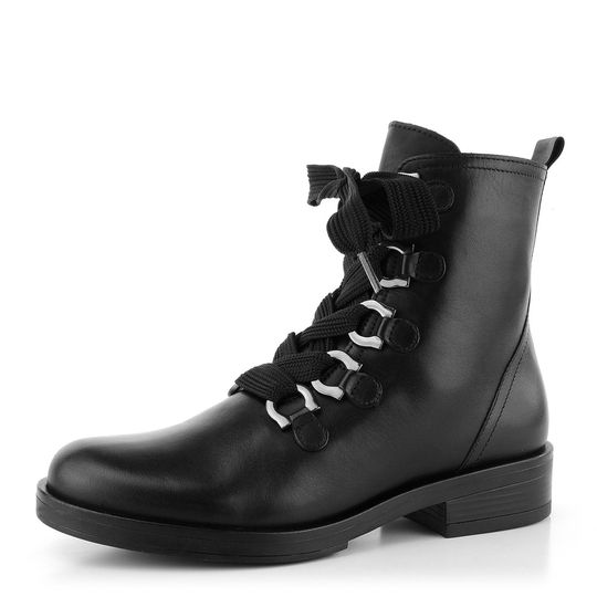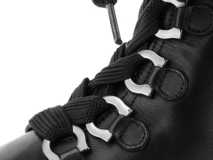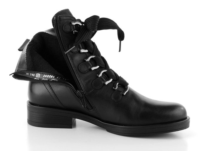 Dámský vyteplený kotník s dominantními poutky v provazování a svrškem z jemné hladké kůže.