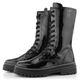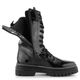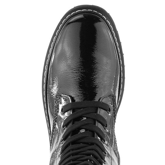 Nevšední dámský vysoký kotník v lakovaném provedení na vysoké podešvi s hrubým vzorkem.