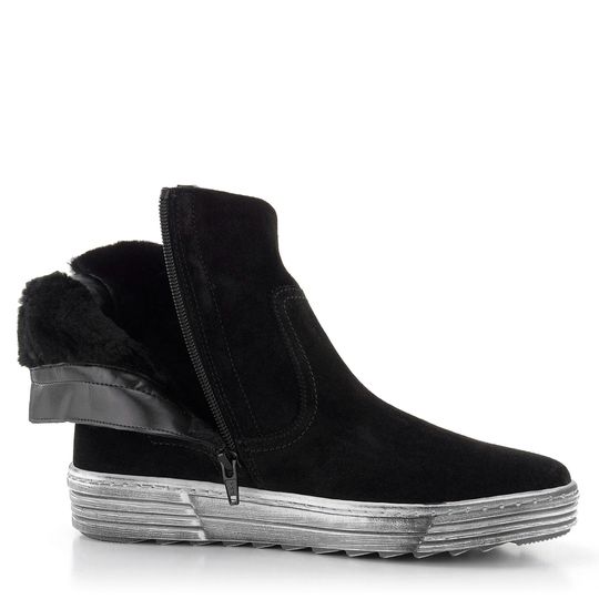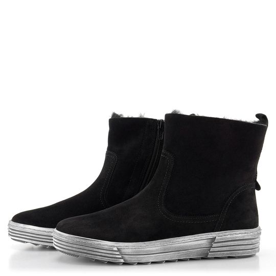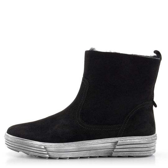 Elegantní a pohodlný dámský kotník od značky Gabor je ideální volbou pro podzimní a zimní měsíce. Tento model vyniká svým jednoduchým, ale stylovým designem a je vyroben z pevného koženého semiše v klasické černé barvě. Pro snadné obutí je vybaven postranním zipem. Uvnitř najdete velmi teplou vlněnou podšívku, která udrží vaše nohy v teple i v chladném počasí. Vyjímatelná stélka s pěnovým základem zajišťuje maximální komfort při chůzi. Rovná flexibilní podešev se šedým stínováním dodává botám moderní vzhled a stabilitu. Výška podpatku je 3,5 cm, což poskytuje ideální kombinaci pohodlí a elegance. Výška kotníku je 13 cm, což chrání vaše nohy před chladem. Tento model je vyroben kombinovaným způsobem (šitý a lepený spoj), což zaručuje jeho dlouhou životnost a odolnost.