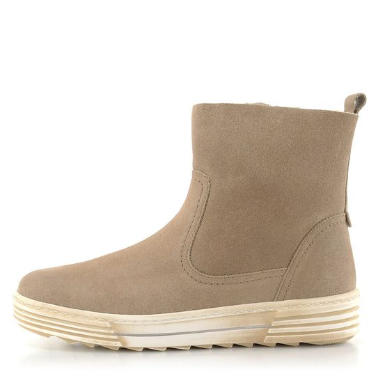 Dámské kotníkové boty značky Gabor jsou ideální volbou pro podzimní a zimní sezónu. Tyto boty zaujmou svým elegantním béžovým odstínem a pevnou koženou semišovou konstrukcí, která zaručuje dlouhou životnost. Díky postrannímu zipu je obouvání snadné a rychlé. Vnitřní vlněná podšívka poskytuje maximální teplo a pohodlí i v chladných dnech. Boty mají vyjímatelnou stélku s pěnovým základem, což přispívá k vyššímu komfortu při nošení. Flexibilní podešev a výška podpatku 3,5 cm zajišťují stabilitu a pohodlí při každém kroku. Výška kotníku je 13 cm, což dodává botám moderní vzhled a zároveň chrání před nepříznivým počasím. Kombinovaný způsob výroby (šitý a lepený spoj) garantuje pevnost a odolnost. Tyto kotníkové boty jsou perfektní volbou pro ženy, které hledají stylovou a zároveň praktickou obuv do města či na lehkou procházku.