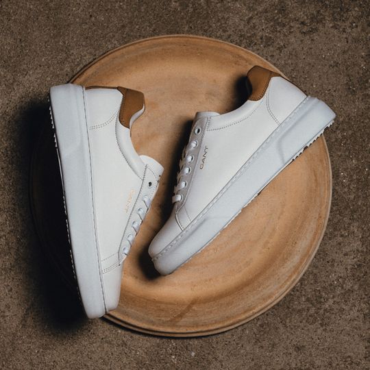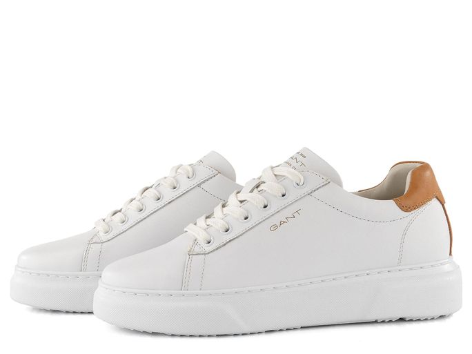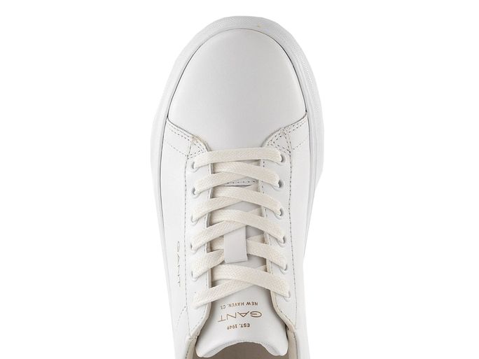 Dámské kožené tenisky na platformě, v jednoduchém střihu umocněném bílou barvou.