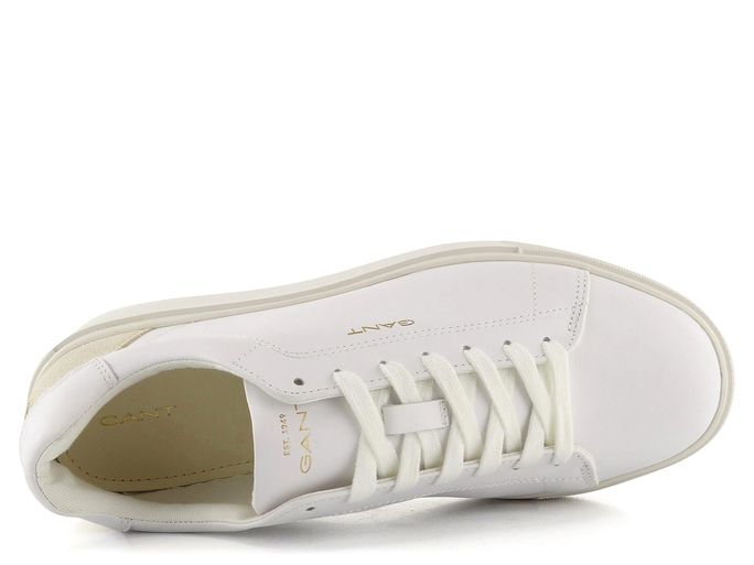 Vyzkoušejte si komfort a styl s těmito bílými koženými teniskami od značky Gant. Tento model je ideální pro jarní a letní sezónu, kdy chcete vypadat skvěle a cítit se pohodlně. Tenisky mají kulatou špičku a jsou vyrobeny z hladké kůže, s patním dílem v semišovém provedení ve světle béžové barvě. Uvnitř vás čeká bavlněná podšívka a měkká kožená stélka, která poskytuje maximální pohodlí.