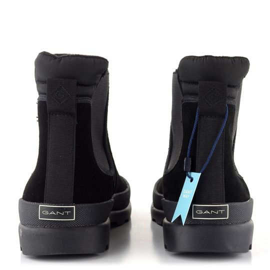 Elegantní černé chelsea kotníkové boty značky Gant jsou ideální volbou pro podzimní a zimní sezónu. Tento trendový model na vysoké platformě nabízí prozouvací design a prostorný střih s kulatou špičkou. Svršek z pevné semišové kůže a pruženky zajišťuje komfort a styl. Široké pružné vsadky po obou stranách usnadňují obouvání a polstrovaný patní lem přidává na pohodlí. Boty mají teplejší textilní podšívku, která je příjemná na dotek, a měkkou koženou stélku. Vysoká platforma ve světle béžové barvě s hrubým vzorkem je módním prvkem, který podtrhuje celkový vzhled. Výška kotníku je 11,5 cm (měřeno bez podešve po okraj pruženky), což poskytuje dostatečnou oporu. Tento model je vyroben lepeným způsobem, což zaručuje trvanlivost a kvalitu. Vsaďte na styl a komfort s těmito chelsea botami značky Gant.